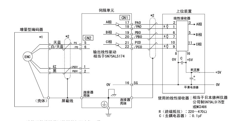 這個(gè)線性接收器應(yīng)該是把ABZ相的伺服輸出轉(zhuǎn)為ABZ相集電極輸出.....用萬用表量一下就知道.... 樓主留言:用萬用表怎么量? |