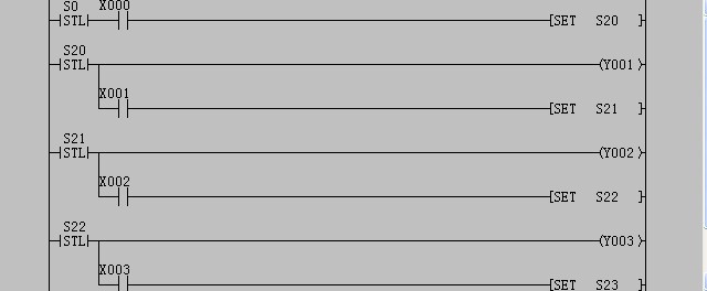 STL S0 LD X0 SET S20 STL S20 OUT Y1 LD X1 SET S21 。。。 |