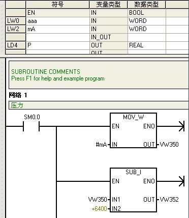 呵呵有一個西門子PLC-S7-200的壓力子程序,好像是模擬量轉(zhuǎn)換,但是沒有看到得到AIWO地址,還要為什么要進(jìn)行實(shí)數(shù)相加?哪位前輩指點(diǎn)一下小弟,本人是新手,