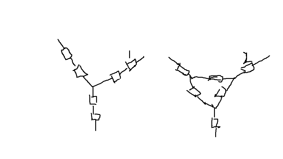 圖2中間的三角形的三個(gè)電阻,可以等效轉(zhuǎn)換成星形接法(但電阻值要計(jì)算),這樣就能轉(zhuǎn)換成圖1形式的接線圖。