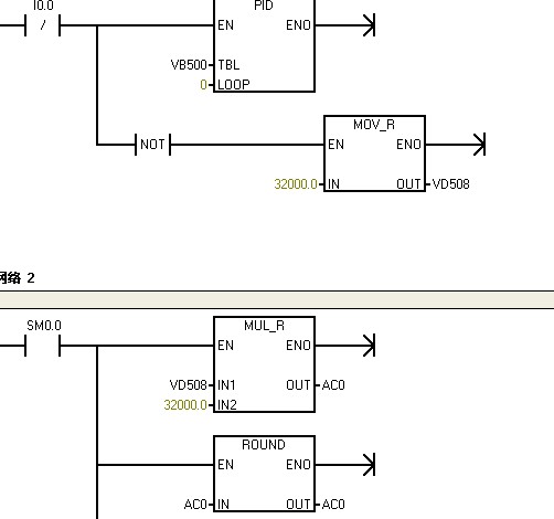 這段程序的目的應(yīng)該是,I0.0如果接通執(zhí)行PID運算,結(jié)果是從VD508輸出的,