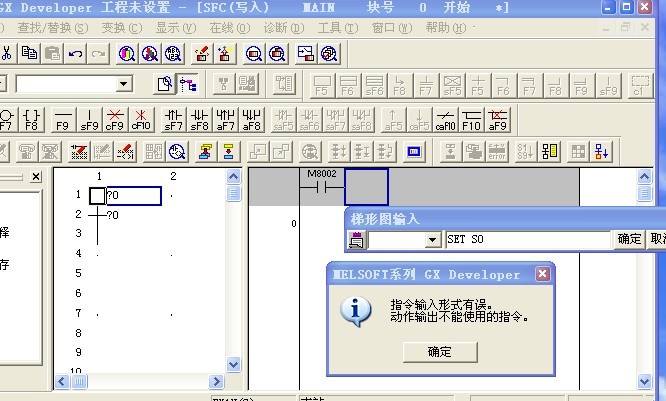 應(yīng)該先建立梯形圖塊,在梯形圖塊里SET S0 接著在建立SFC塊才可以的