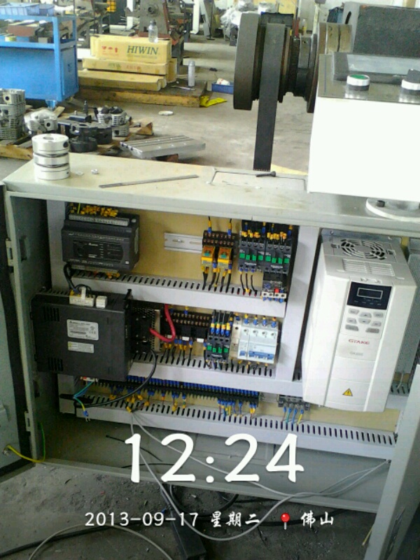 機械廠源程序,PLC有注解一軸伺服+變頻器通+人機界面+電箱照片
