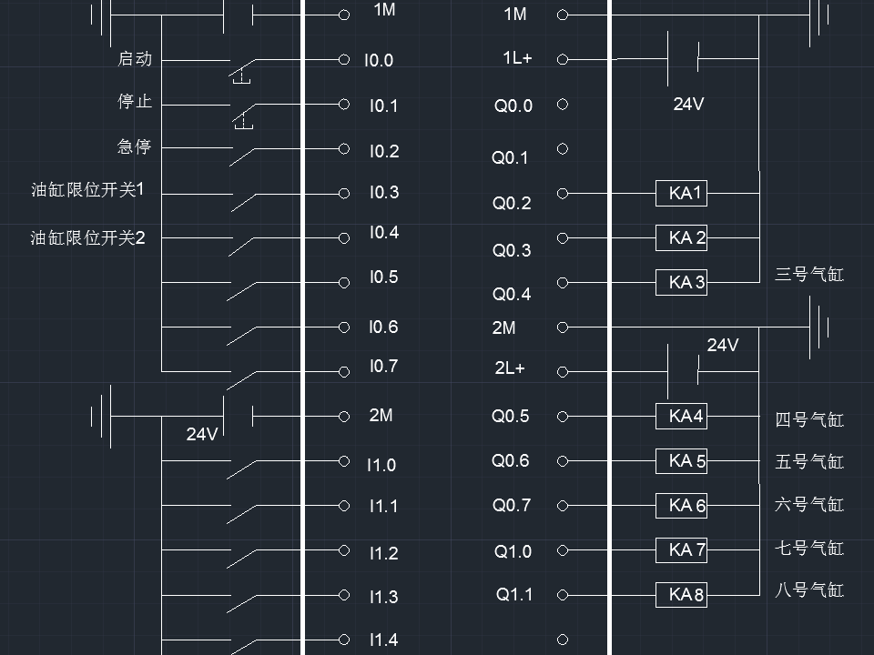 8號油缸Q1.1推動活塞至油缸限位開關2(I0.4),到位,停止推動。