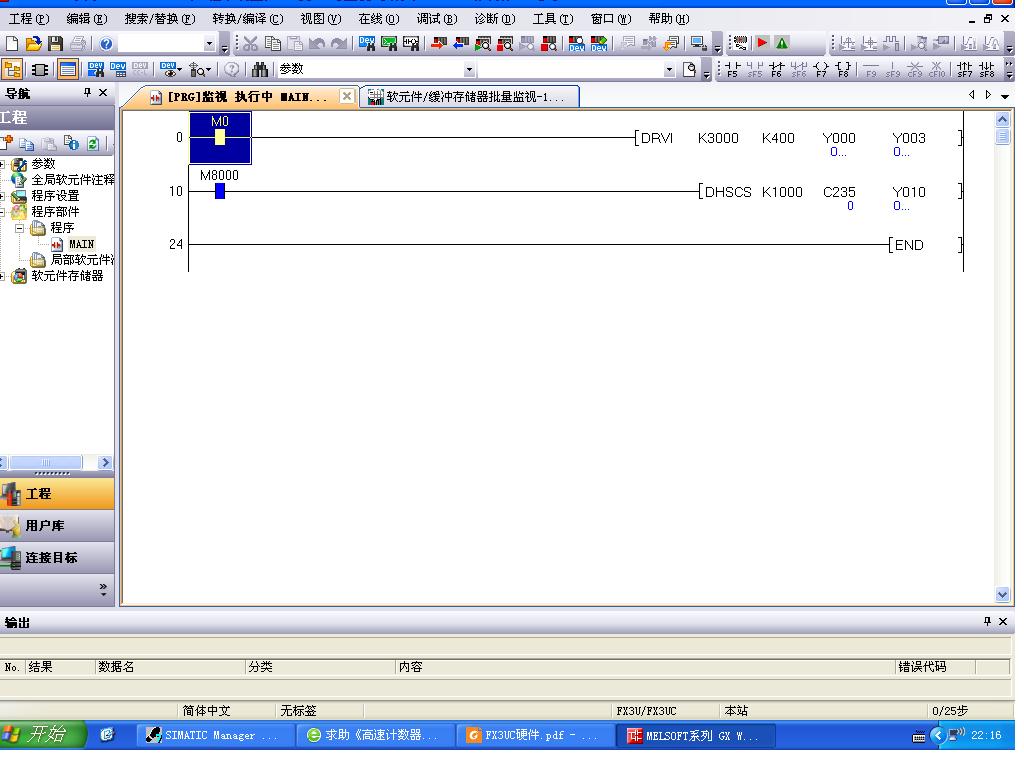 用DRVI指令輸出脈沖,X0先用C0計數(shù)器進行計數(shù),當(dāng)頻率較小時C0計數(shù)正常