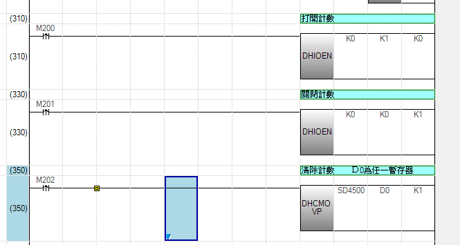 DHIOEN k0 k0 k1     //k0:高速計數(shù)    k0:不起啟動任何ch  k1:停止ch1