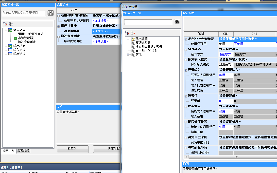 現(xiàn)用一個360R/P的增量式編碼器A、B、Z相分別接在X0、X1、X10上,高速計數(shù)器