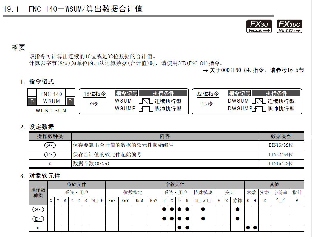 引用引用第1樓wenliang于2021-11-12 09:58發(fā)表的 :請問各位大師,我用FX3GA-PLC、因為不能使用求和指令,有什么好方法可以使連續(xù)16個寄存器相加求結(jié)果,現(xiàn)在是用ADD指令相加計算的