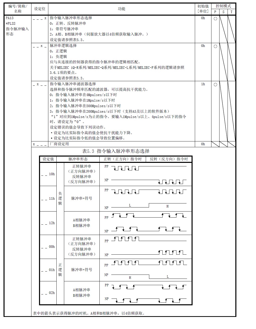 你要看一下參數(shù)PA13設定了多少,這個參數(shù)是要根據(jù)你PLC輸出的脈沖類型和你現(xiàn)場的接線方式來確定的,例如你要脈沖加方向的模式,那你可以設定為:0111,如果你是正反向脈沖串,那你可以設定為:0110,供參考,不對請糾正