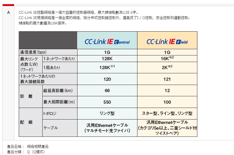 一個是CC-Link IE Control 另一個是CC-Link IE Field