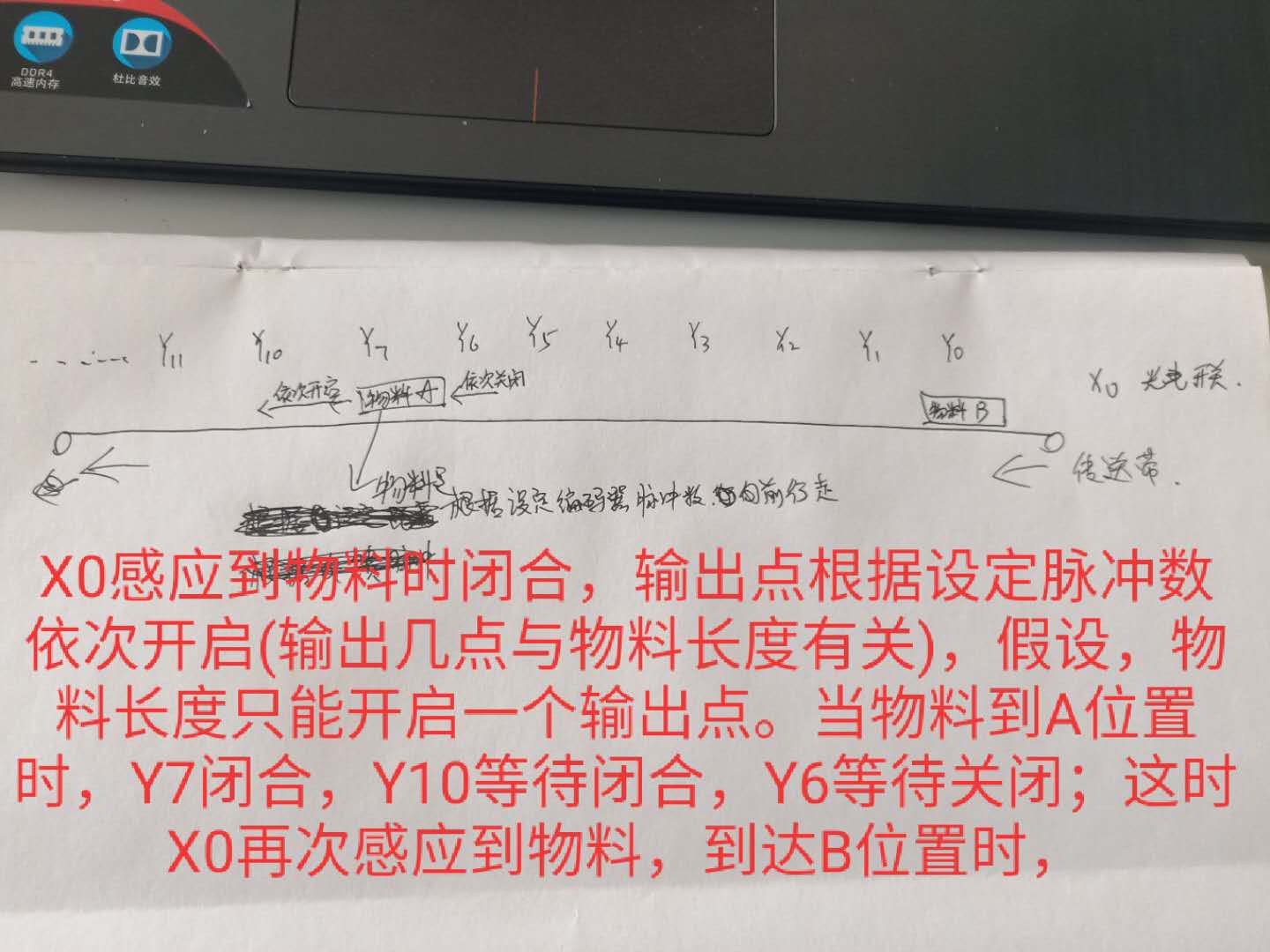 ![]() 這時,A位置物料繼續(xù)向前行走,Y10閉合,Y7斷開,Y11通,Y10斷。。。。依次開啟,依次關(guān)閉 已知,X0感應(yīng)物料長度來依次輸出點,物料離開X0感應(yīng)點的范圍后,輸出依次關(guān)閉 那么下一塊物料過來時,X0再次閉合,到達B位置時,輸出控制思路求各位老師指點 現(xiàn)在有個程序,其他的控制都實現(xiàn)了,就是這里,當(dāng)物料長度很短時,物料之間間隔過大,前面運行著呢,,后面又來一塊,沒思路了,求各位老師開導(dǎo) 傳送帶是在密閉箱體中,設(shè)備開啟后,傳送帶一直行走,只有進料口有光電開關(guān) 再次更新,之前忙別的活把這個程序耽誤了,現(xiàn)在這個程序功能已經(jīng)實現(xiàn)了,待我稍微完善一下分享給大家 [ 此帖被青年加油在2021-03-08 11:56重新編輯 ] |