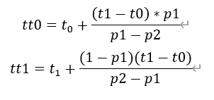 另外這個曲線不分段,可以討論下P1,P2.其實就相當于帶入方程的點不是0,t1了,因為只是曲線中間的一段.設帶入方程的變成了tt0,tt1。那么和t0,t1的關系由下面這個公式算出。補充下,帶入方程的點應該是以下6個。