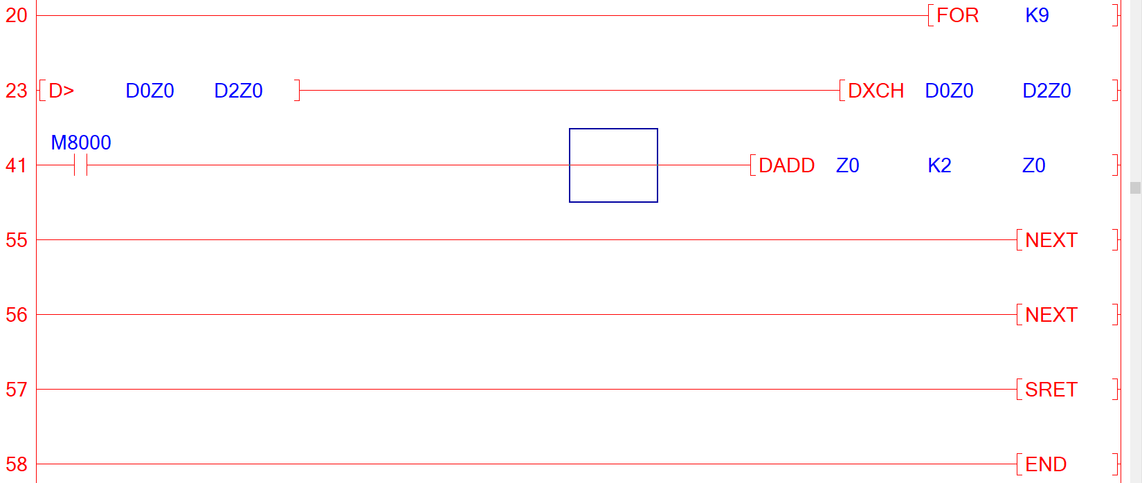 把D200,  D202,......D218共10個32位整數(shù)地址的值從小到大排列