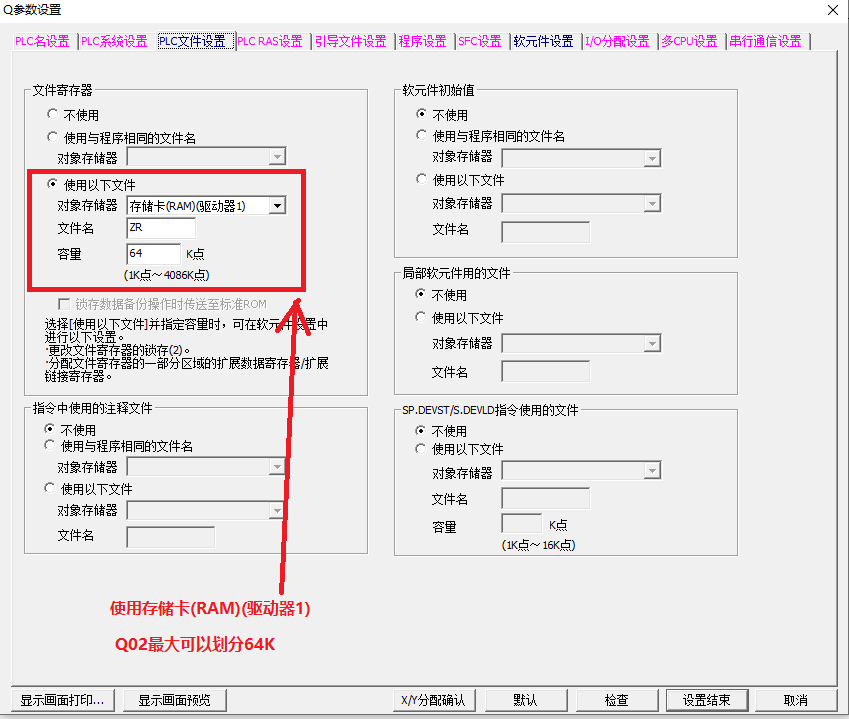 內(nèi)存可以擴(kuò)展,軟元件是根據(jù)CPU定制固定的,不可以隨意更改。此種情況,可以進(jìn)行多CPU設(shè)置。Q系列PLC支持多CPU