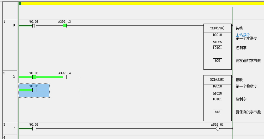 傳送至PLC運(yùn)行,發(fā)送時(shí),A392.13自動(dòng)變?yōu)镺N,串口助手接收信息正常,此時(shí)A392.13一直為ON,電腦串口助手發(fā)送相應(yīng)數(shù)據(jù),PLC側(cè)A392.14一直為oFF,A392.13一直為ON,串口單元板的燈也會(huì)亮,此時(shí),不通過A392.14,直接觸發(fā)PLC的RXD指令,內(nèi)存區(qū)可以看到接收到的數(shù)據(jù),內(nèi)容也是對(duì)的。想請(qǐng)教老師,我這個(gè)情況為什么A392.14不能夠變?yōu)镺N來自動(dòng)收取數(shù)據(jù)呢???