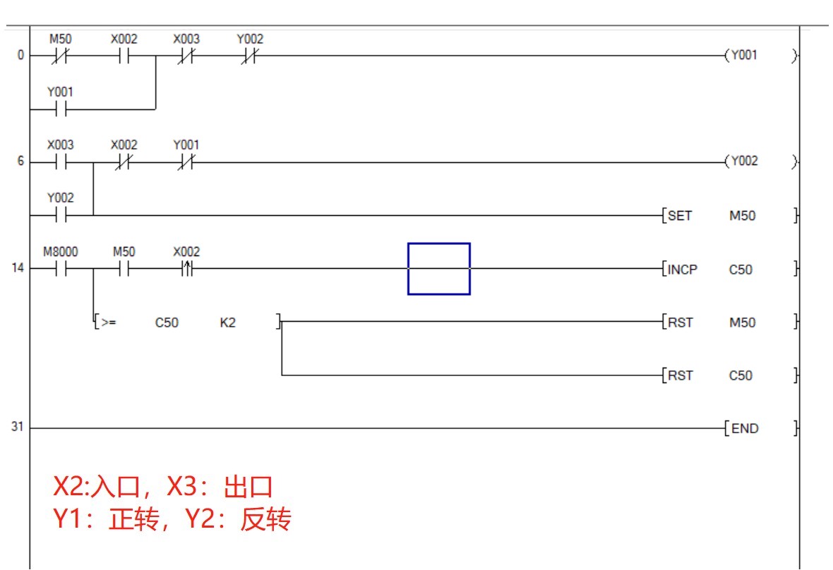 按我的理解,實際上是入口處傳感器要觸發(fā)兩次,第二次停機,那么這里寫法就多了.