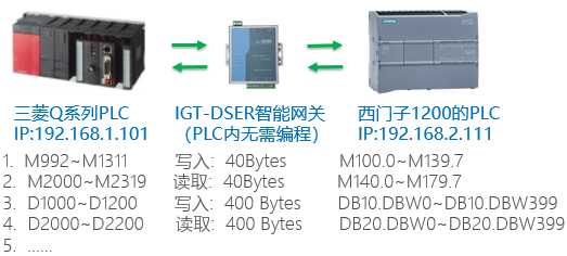 本案例是三菱Q系列PLC與西門子S7-1200的PLC之間通訊,想要實(shí)現(xiàn)的通訊任務(wù)如下:
