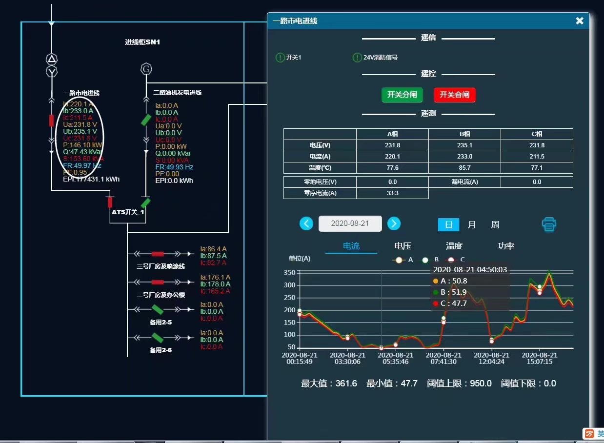 電力項(xiàng)目使用遠(yuǎn)程模塊GRM230自帶io,模擬量開關(guān)量,rs485采集儀表,使用圖形化云組態(tài)APP軟件WEBGUI實(shí)現(xiàn)遠(yuǎn)程監(jiān)控