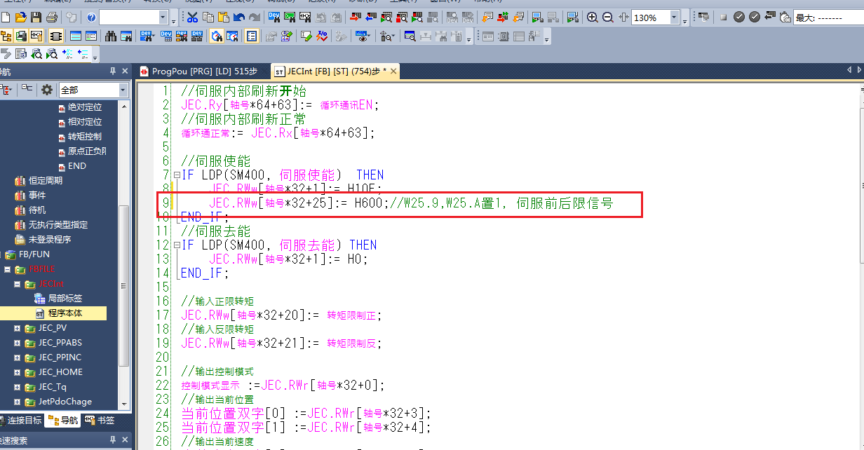 三菱工程師給的FX5U-JET例子,這里是一臺伺服,我要用到3軸,在刷新設(shè)置那里走了不少彎路;