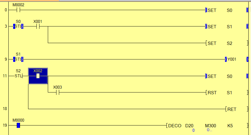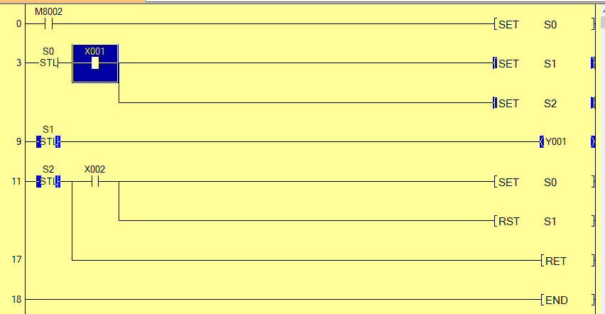 stl指令可以說一門plc語言,因?yàn)榛趕tl指令有專門的圖形化編程界面,以方便進(jìn)行步進(jìn)編程。且生成的程序有極高的執(zhí)行效率。。。只有需要執(zhí)行的步才會被訪問,其他步完全不占用CPU時(shí)間(類似JUMP或子程序調(diào)用),不似其他方式實(shí)現(xiàn)的步進(jìn)(比如移位),執(zhí)行時(shí)所有步都需要判斷當(dāng)前是否要執(zhí)行(三菱的判斷但不執(zhí)行占用的CPU時(shí)間并不小多少,手冊附錄有詳細(xì)時(shí)間占用表)。