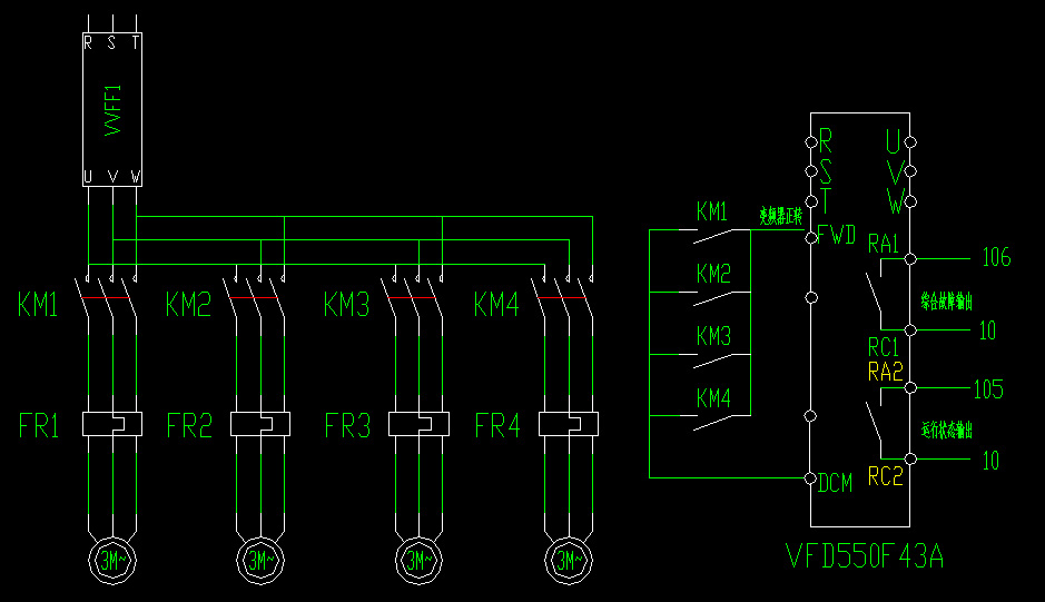這樣做變頻器的參數(shù)就變的沒意義了.而且變頻器應選用電機功率總和的大一級,如果電機是重載型變頻器級別還需要再往上調(diào).這樣做貌似可以節(jié)約成本,但是對變頻器沖擊大,維護困難. 如果想四臺同時啟動時最好先吸合接觸器然后再啟動變頻器,停機時先停變頻再斷開接觸器.至于想手動單獨操作某臺電機變頻就要硬撐著了,而且變頻器最好買好點的品牌. |