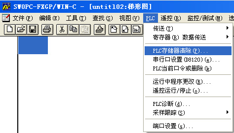接通PLC的電源,把PLC的“Run/Stop”開關(guān)放在Stop位置上,打開FXGPWINC 編程軟件,新建一個工程,使得的“PLC存儲器清除”功能可用,如圖:
